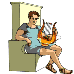 | Apollo (uh-POL-oh), whose Roman name was also Apollo, was the god of prophesy, music, and healing. Like most of his fellow Olympians, Apollo did not hesitate to intervene in human affairs. It was he who brought about the demise of the mighty Achilles. Of all the heroes besieging the city of Troy in the Trojan War, Achilles was the best fighter by far. He had easily defeated the Trojan captain Hector in single combat. But Apollo helped Hector's brother Paris slay Achilles with an arrow. | |