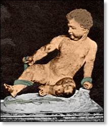 Like most authentic heroes, Heracles had a god as one of his parents, being the son of Zeus and a mortal woman named Alcmene. Zeus's wife Hera was jealous of Heracles, and when he was still an infant she sent two snakes to kill him in his crib. Heracles was found prattling delighted baby talk, a strangled serpent in each hand.